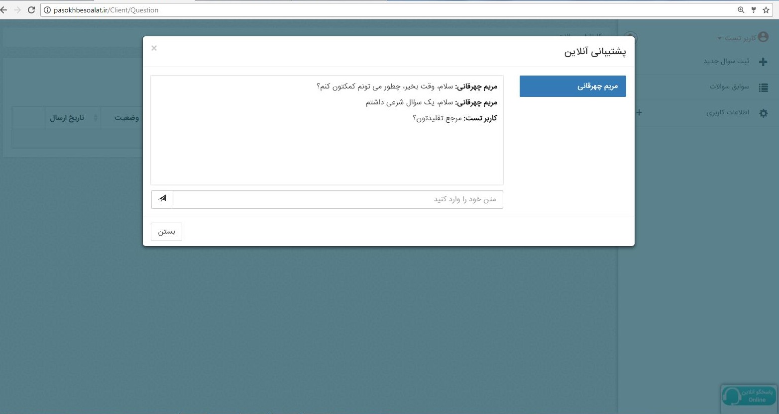 4. با اتصال به کارشناسان پاسخگو، می توانید پرسش خود را ارسال نمایید.