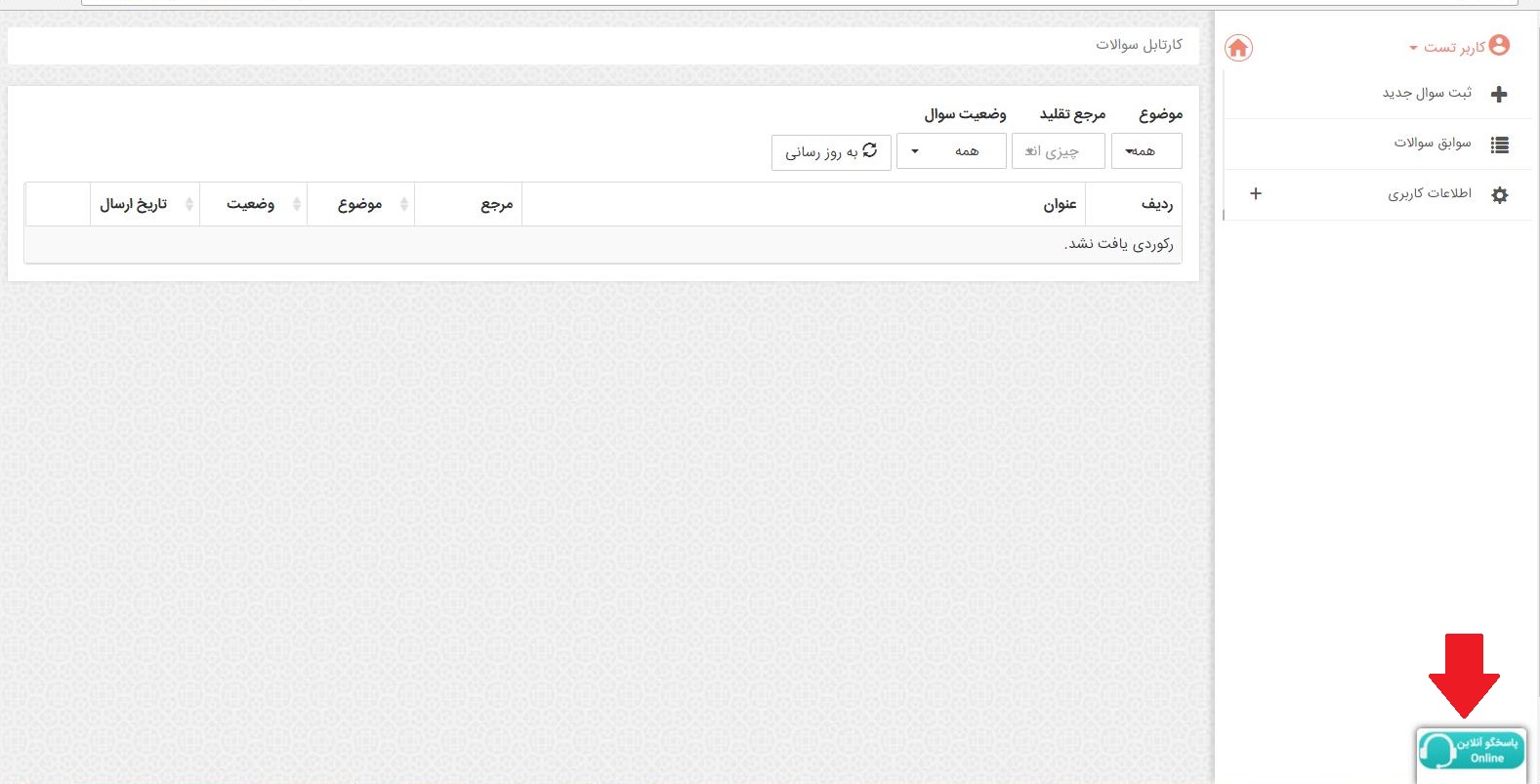1. برای استفاده از امکان پاسخگویی آنلاین ابتدا در سایت ثبت نام نمایید(راهنمای ثبت نام در سایت )
