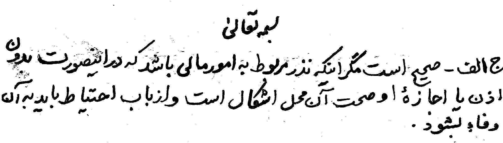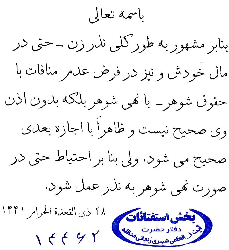 الف) آيا نذر زن بدون اجازه شوهر صحيح است؟