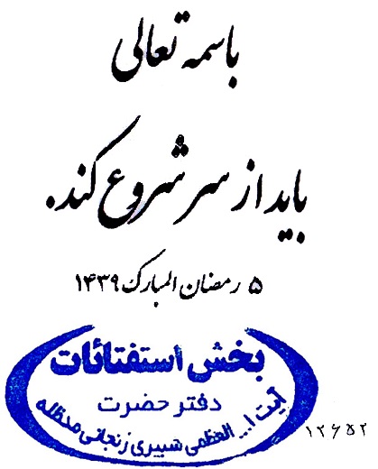 آیت الله بهجت (رحمة الله علیه), آیت الله تبریزی (رحمة الله علیه), آیت الله خامنه ای (دام ظله العالی), آیت الله سبحانی (دام ظله العالی), آیت الله سیستانی (دام ظله العالی), آیت الله شبیری (دام ظله العالی), آیت الله صافی (دام ظله العالی), آیت الله فاضل لنکرانی (رحمة الله علیه), آیت الله مکارم شیرازی (دام ظله العالی), آیت الله وحید خراسانی (دام ظله العالی)